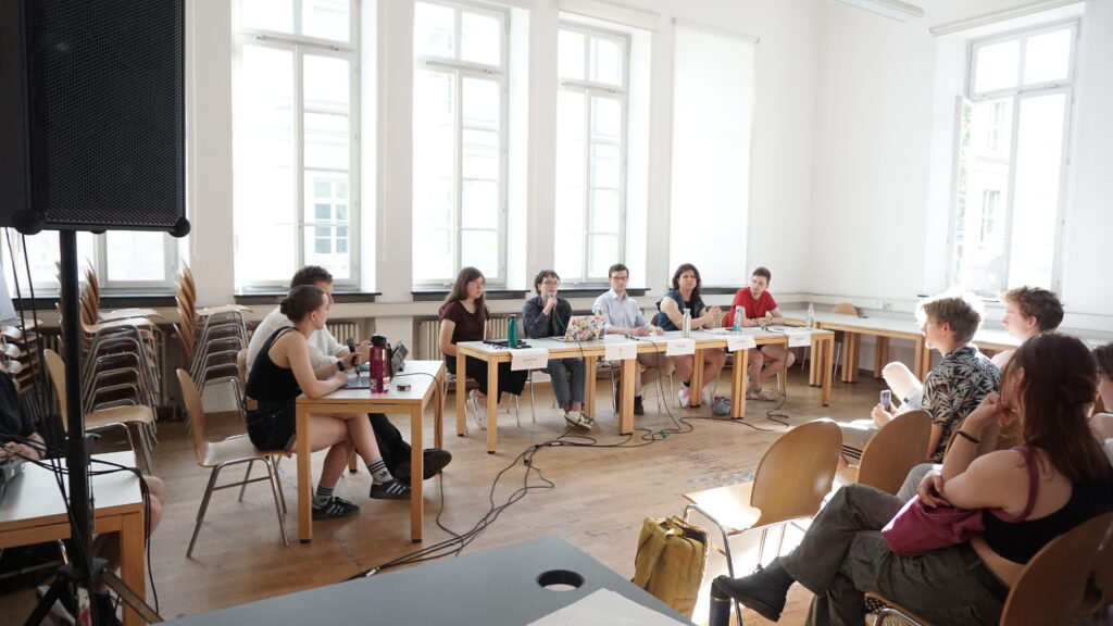 Die Liste GAMBI blieb der Veranstaltung trotz Einladung ohne Begründung fern. Rund 40 Zuschauer*innen verfolgten die teils kontroversen, teils überraschend einig geführten Diskussionen über zentrale hochschulpolitische Streitfragen: finanzielle Entlastung, Klimapolitik, psychische Gesundheit und die Frage, ob sich die Universität Tübingen von ihren beiden Namensgebern trennen sollte.