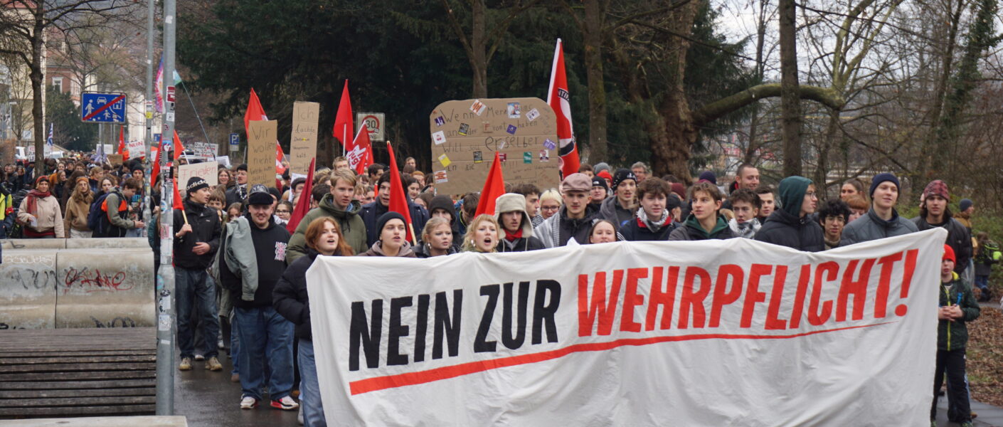 Während die Debatte um die Wehrpflicht in den Medien und im politischen Berlin rauf und runter debattiert wurde, war es in Tübingen bislang still um das geplante Gesetz – bis jetzt: Nun gingen Tübinger Schüler*innen auf die Straße und stellten klar: Für den Dienst an der Waffe stehen sie nicht zur Verfügung.