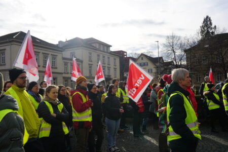 Am Mittwoch machten die Beschäftigten im öffentlichen Dienst vor der Neuen Aula ihrem Frust Luft. Die Mensen und Cafeterien des Studierendenwerks blieben wegen den Streiks geschlossen.