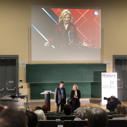 Das Event findet in der Neuen Aula statt. Vor den Türen versammeln sich zahlreiche Menschen. Geht es denn gleich los? Türen öffnen sich und das Audimax, das Herzstück der Vorlesungssäle, füllt sich. Brechend voll ist er nicht, der Saal, aber mit vielen Fans und oder interessierten Studierenden gefüllt ist er …