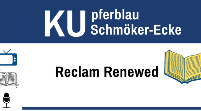 Manchmal kann eine Pandemie alles verändern. Bars und Kneipen sind plötzlich geschlossen, Konzerte und Partys wurden abgesagt – da bleibt nicht mehr viel an kultureller Inspiration übrig. Oder doch? In unserer neuen Artikelreihe „die Kupferblau-Schmöker-Ecke“ stellen wir euch thematisch abgestimmte Empfehlungen für Bücher, Podcasts und Serien zusammen. Zum Schmökern bieten wir euch heute neue und aufregende Interpretationen von klassischen Reclam-Werken.