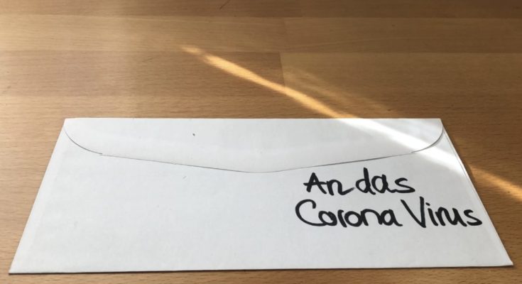 Warum fangen wir eigentlich Briefe immer mit ‚Liebe/r/s‘ an? Corona, du bist uns nicht lieb. Und du bist auch nicht ‚Sehr geehrt‘. Wahrscheinlich wäre die beste Anrede: ‚An dasjenige, das es betrifft‘. Also: