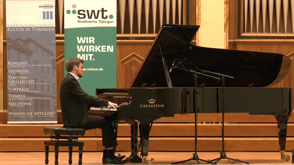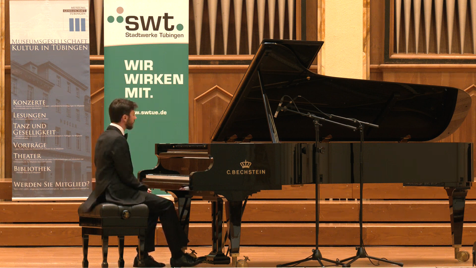Alljährlich findet in Tübingen das Internationale Pianistenfestival statt, ausgetragen von der Museumsgesellschaft Tübingen e. V. und vom Kulturreferat der Eberhard Karls Universität. Letztes Jahr musste das Festival aufgrund von Corona leider abgesagt werden. Dieses Jahr fand es wieder statt – wenn auch anders als erwartet: Geplant war ein zweitägiges Festival mit fünf verschiedenen nationalen und internationalen Pianisten. Aufgrund der Einreisebeschränkungen wurde jedoch umdisponiert. So wurde aus zwei Abenden nur einer. Und auf der Bühne standen lediglich zwei Pianisten: Philipp Scheucher aus Österreich und Emanuel Roch aus Deutschland. Doch das tat dem Abend keinen Abbruch – der Hörgenuss kam nicht zu kurz.