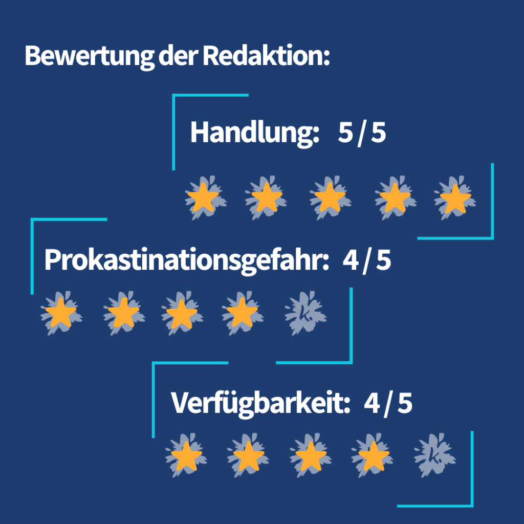 Die Liebesgeschichte ist mitreißend und gefühlvoll erzählt, ohne dabei kitschig zu werden. Alle Charaktere sind liebevoll ausgearbeitet und im Hintergrund schwellt die Gefahr der Modernisierung, wodurch ein tiefergehendes Thema aufgegriffen wird. Für die zeitlose Handlung mit dem Retro-Flair der Achtzigerjahre gibt es deshalb die volle Punktzahl von 5 Kupferblau-Sternen. Das Buch ist in herkömmlichen Buchhandlungen ebenso verfügbar wie auf Amazon oder direkt beim Verlag. Wer E-Books bevorzugt, findet das Buch auch für den Kindle. Und alle, die ungerne lesen, erhalten es auch als Hörbuch bei Audible oder Bookbeat. Für die Verfügbarkeit gibt es darum 4 Kupferblau-Sterne. Insgesamt handelt es sich um genau das richtige Buch für verregnete Tage auf dem Sofa, am Strand oder in der Bahn – also eigentlich für jeden Anlass. Bei diesem Wohlfühlbuch ist die Prokrastinationsgefahr also ziemlich hoch und es erhält in dieser Kategorie daher ebenfalls 4 Kupferblau-Sterne.
