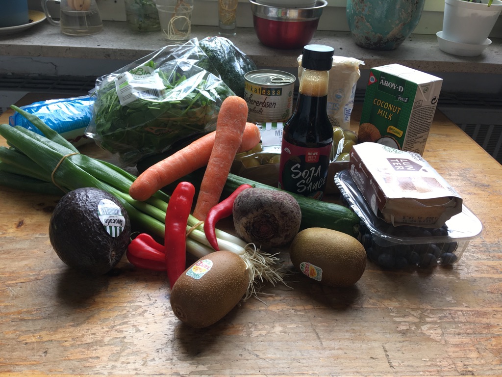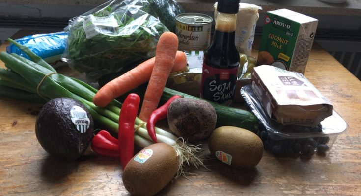 Als am Dienstag dann endlich mein Konto wieder gedeckt war, bin ich voller Elan und Eifer einkaufen gegangen. Mein erster Stopp war der Marktstand vorm Nonnenhaus. Dort versorgte ich mich mit Gemüse. Danach bin ich weiter in den Unverpacktladen „Speicher“ und war sehr angenehm überrascht. Die Preise waren lang nicht so hoch wie erwartet und die Mitarbeiter*innen sehr freundlich. Außerdem gibt es zwischen Dienstag und Donnerstag von 15-17 Uhr sogar Rabatt für Studierende. Was mir besonders gefallen hat, war, dass die Spaghetti statt durch Plastik, mit einem kleinen weißen Bindfaden zusammengehalten wurden.