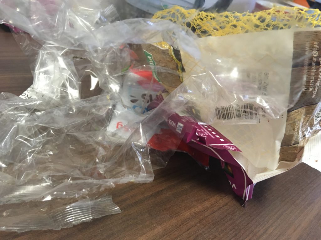 Zugegebenermaßen habe ich mir für den Start meiner Challenge eine denkbar schlechte Woche ausgesucht. Es war Monatsende und mein Vermögen beschränkte sich auf einen Kontostand von minus 27 und einem Barvermögen von 35 Euro. Deshalb habe ich am ersten Tag meiner Challenge von Resten gelebt. Das Einzige was ich mir gegönnt habe, waren zwei Brötchen vom Bäcker- die immerhin in einer Papiertüte verpackt waren. Theoretisch habe ich am ersten Tag also schon mal ordentlich vorgelegt.