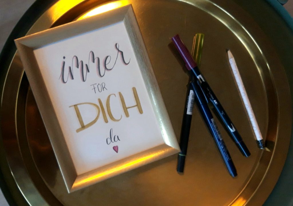 Was gibt es Schöneres zu verschenken, als ehrliche Worte? Richtig: Wenn diese kunstvoll gestaltet, liebevoll in einem Bilderrahmen Platz finden! Das Einzige, was man dafür braucht, ist festes Papier, ein paar Stifte (am besten Lettering-Stifte) und natürlich einen Bilderrahmen.