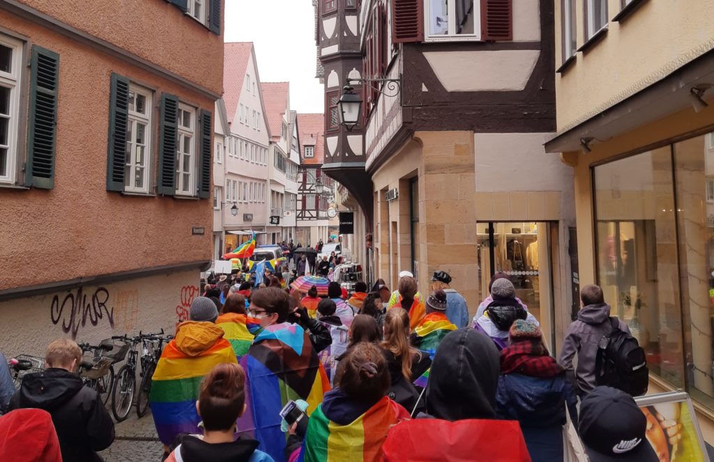 Die queere Woche in Tübingen wurde am 22. Oktober von einem Auftritt Maren Kroymanns eingeleitet, und am 30. Oktober mit einer Christopher Street Day Parade gekrönt. 2500 Teilnehmer*innen gingen auf die Straße, um die Vielfalt von Geschlechtern, Sexualitäten und Lebenskonzepten zu zelebrieren. Organisiert wurde das farbenfrohe Fest von dem neu gegründeten „CSD Tübingen e.V.“, und gefördert von der AIDS-Hilfe Tübingen-Reutlingen und der Universitätsstadt Tübingen. Gerade vor dem Hintergrund der in Polen zunehmenden Queerfeindlichkeit gewann ein solcher Demozug, der sich Räume nimmt, die LGBT-Menschen so lange verwehrt blieben, an Bedeutung. Doch obwohl der CSD das Highlight der queeren Woche war, war er lange nicht die einzige Veranstaltung: In Tübingen fand ein reger Austausch statt, beispielsweise über die Verankerung queerer Rechte in der kommunalen Politik.