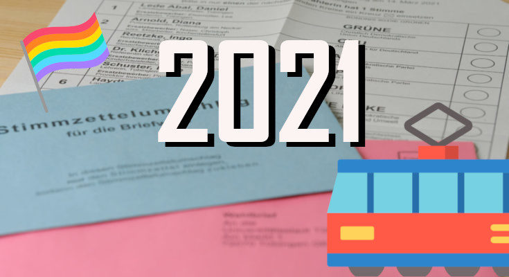 Das Jahr 2021 begann hoffnungsfroh und endet in enttäuschter Corona-Müdigkeit. Doch immerhin konnten wir in diesem Jahr die Uni wenigstens ein paar Mal von innen sehen. Wir konnten uns mit Familienmitgliedern oder Freund*innen wegen der Maßnahmen zerstreiten (Querdenker im eigenen Umfeld – was tun?) – oder alternativ wegen der zahlreichen Wahlen, die stattfanden (wobei über der Bundestagswahl vermutlich mehr Freundschaften zerbrachen als über der Wahl des Tübinger Studierendenrats). In politischer Hinsicht war es ein aufregendes Jahr. In diesem Artikel wird euch ein Rückblick auf die Höhepunkte präsentiert.