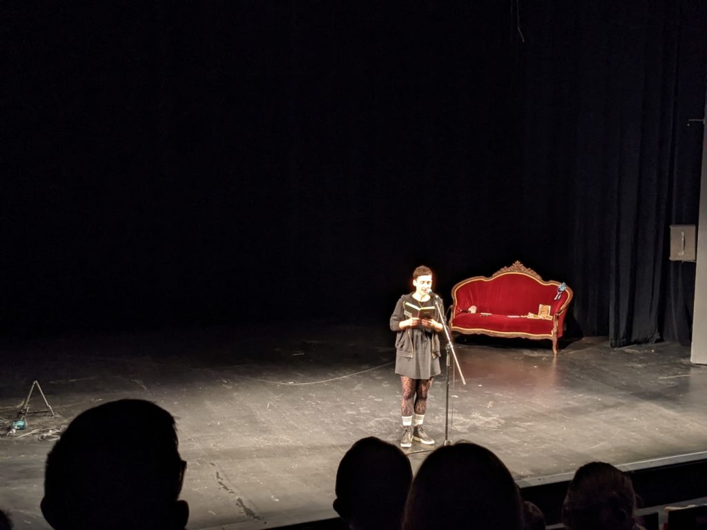 Marina entführte uns erneut, diesmal jedoch nicht auf Reisen, sondern in das Berufsleben einer Referendarin. Mit einer beeindruckenden Bühnenpräsenz sprach sie von Träumen, Erfahrungen und Rückschlägen, die sie hinter dem Lehrer*innenpult schon hatte. Dabei sprühte sie stets eine Energie aus, die zeigte, wie sehr sie ihren Job, trotz all der Hindernisse, eigentlich liebt. Sicherlich wünschen sich nach diesem Abend viele der Anwesenden, sie hätten so eine begeisterte und liebevolle Lehrerin gehabt.
