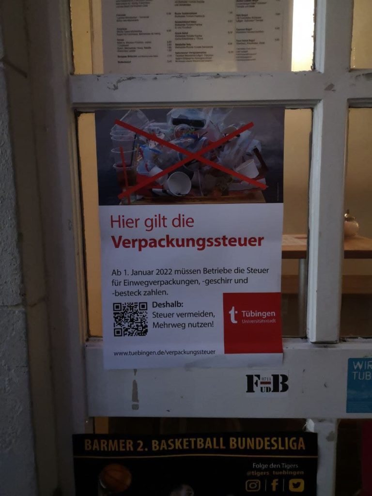 Hier werden von der Stadt Tübingen ausführliche Informationen zur Verpackungssteuer bereit gestellt.