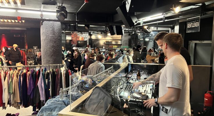 Der Tübinger Vintage Kilo Sale von “Lumpenbande“ ist ein Exemplar dieses Modetrends. Bei einem Vintage Kilo Sale erhält man einen Kilo Kleidung für einen festen Preis, in diesem Fall 35 Euro/KG. Der Verkauf findet dieses Mal in der Friedrichs Bar an der Blauen Brücke statt, vor der die wartenden Kund*innen eine lange Schlange bilden – darunter auch ich.. Endlich werden wir reingelassen und mit lauter Musik vom DJ begrüßt. Ich beobachte begeisterte Kund*innen, die im Rhythmus der Musik den Kopf nicken und sich die Auswahl anschauen. Spontan finde ich den Gründer von „Lumpenbande“ und habe die Möglichkeit ihm ein paar Fragen zu stellen.