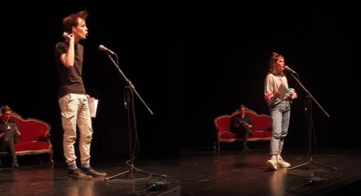 Es gibt Pizza und Kaltgetränke. Ich treffe die Poet*innen 20 Minuten vor Veranstaltungsbeginn im Restaurant des Landestheater Tübingen, von Aufregung ist hier wenig zu spüren. Obwohl sich die 6 Slamer*innen nicht kennen, ist die Atmosphäre entspannt, fast familiär. Verantwortlich ist dafür vor allem Eine: Asli Kücük, die mir direkt das Du anbietet. Das mache man hier grundsätzlich so.