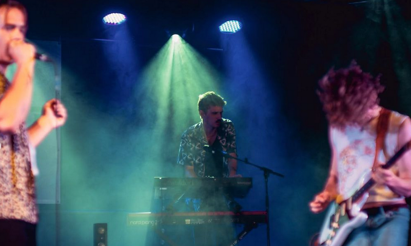 Anton (Leadsänger und Rhythmusgitarrist), Linus (Backing Vocalist am Synthesizer) und Tim (Leadgitarrist). ©Lummerlandband