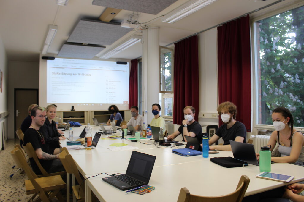 Der StuRa tagte in einem Hybrid-Format: viele Mitglieder waren in Präsenz anwesend, wer wollte, konnte sich online zuschalten. ©Hannah Burckhardt