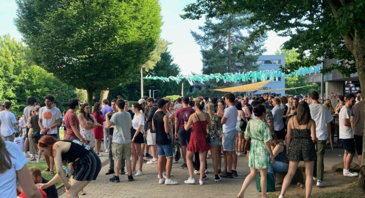 Während die meisten Studierenden sich entweder auf der Tanzflächen außen befinden oder einen kleinen Trip in den viel zu heißen Innenraum wagen, entdeckt man ab und an am Rande der Feier ein älteres Ehepärchen, die die Menge beobachten und bei Gelegenheit immer wieder den Kopf schütteln. Ebenfalls erhaschte man auch ein paar Eltern mit Kindern, die sich durch die Menge bahnen und die Kinder dabei entweder an der Hand mit zerren oder auf dem Arm durch die Menge trugen.