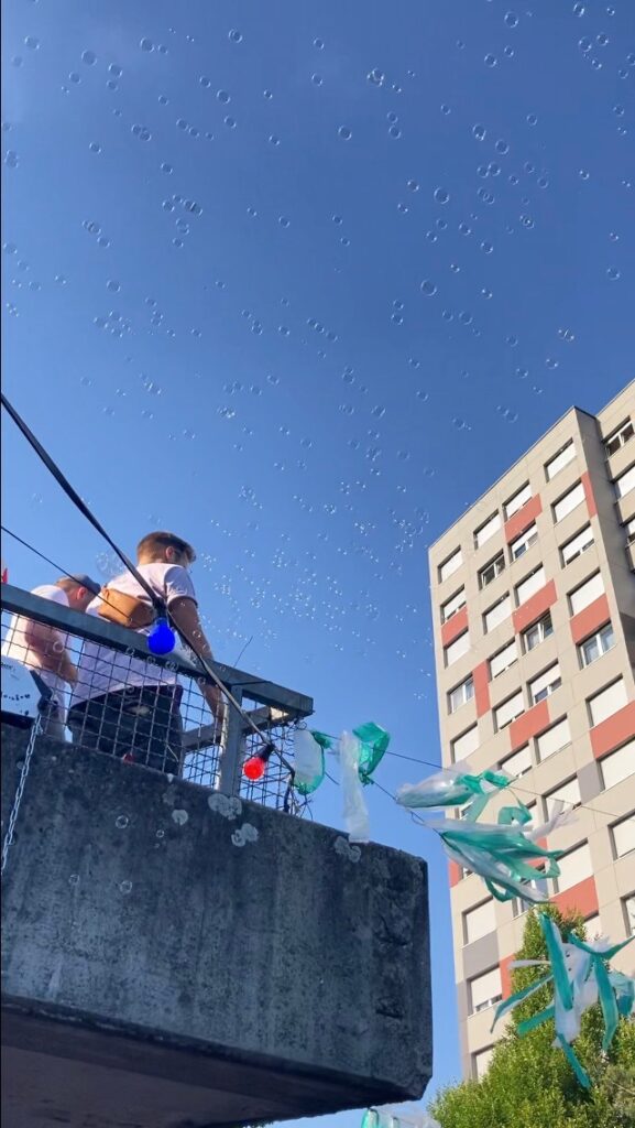 Mit der sinkenden Sonne, steigt nicht nur die Anzahl an Gästen, die unaufhörlich in kleineren Grüppchen auf das Kuckuck zuläuft, sondern auch die Bewegung auf der Tanzfläche. Ein paar Leute schwingen das Tanzbein, auch wenn der Großteil, noch immer, glücklich mit ihrem Getränk in der Hand plaudernd, lachend die Zeit vertreibt. Die Stimmung ist ausgelassen und entspannt und wird erst durch die immer wieder wechselnde Musik aufgerüttelt, die die Tanzenthusiast*innen zur Tanzfläche zu rufen scheint. Immer wieder fliegen Seifenblasen durch die Luft, die neben der Hitze und dem bunten Repertoire an Sommerkleidern und oberkörperfreier Haut, die sommerliche Stimmung durch die Luft tragen. Doch wie zu jeder Feier gehören auch einige Merkwürdigkeiten dazu, die ebenfalls nicht ungeachtet gelassen werden sollten.