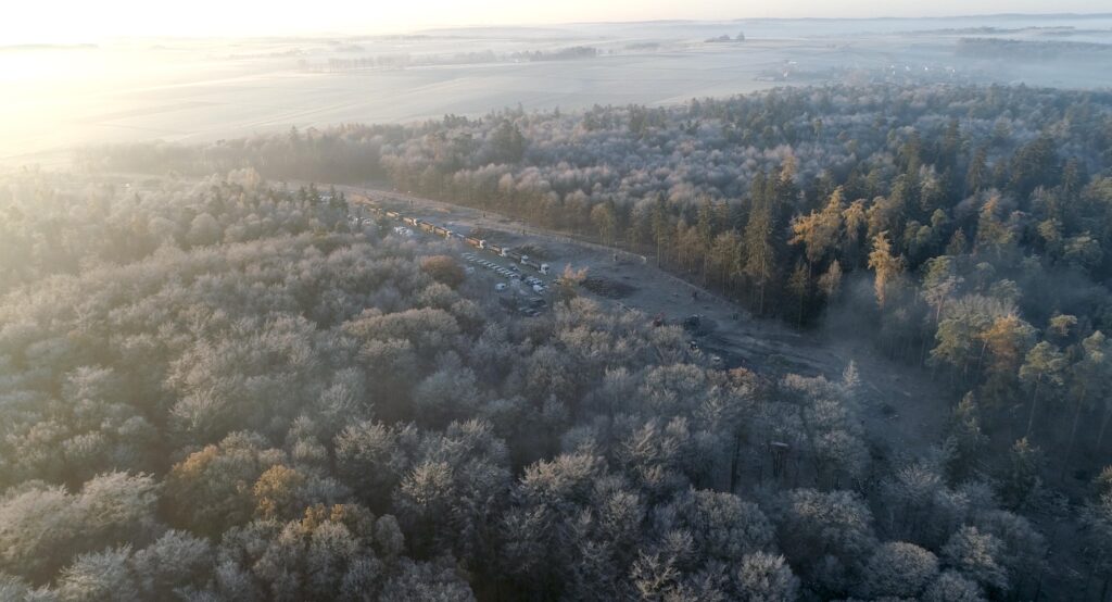 Etwa die Hälfte der Strecke von Kassel aus ist bereits gebaut und in Betrieb, doch der Bau der anderen Hälfte geriet in den letzten 30 Jahren immer wieder ins Stocken. Unter anderem liegt das an dem letzten knapp 18 km langen Stück, das einmal mitten durch den Dannenröder Forst führen soll. 27 Hektar Wald sollen dafür planiert werden.