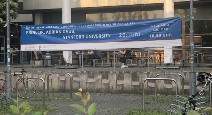 Das Silicon Valley. Ein Ort, der insbesondere in Europa noch eine starke Faszination auf die Menschen ausübt. Adrian Daub, Professor für vergleichende Literaturwissenschaft an der Universität Stanford, hat im Audimax der Universität Tübingen den Mythos des Silicon Valley analysiert und abgekühlt. Die Kupferblau war direkt vor Ort.