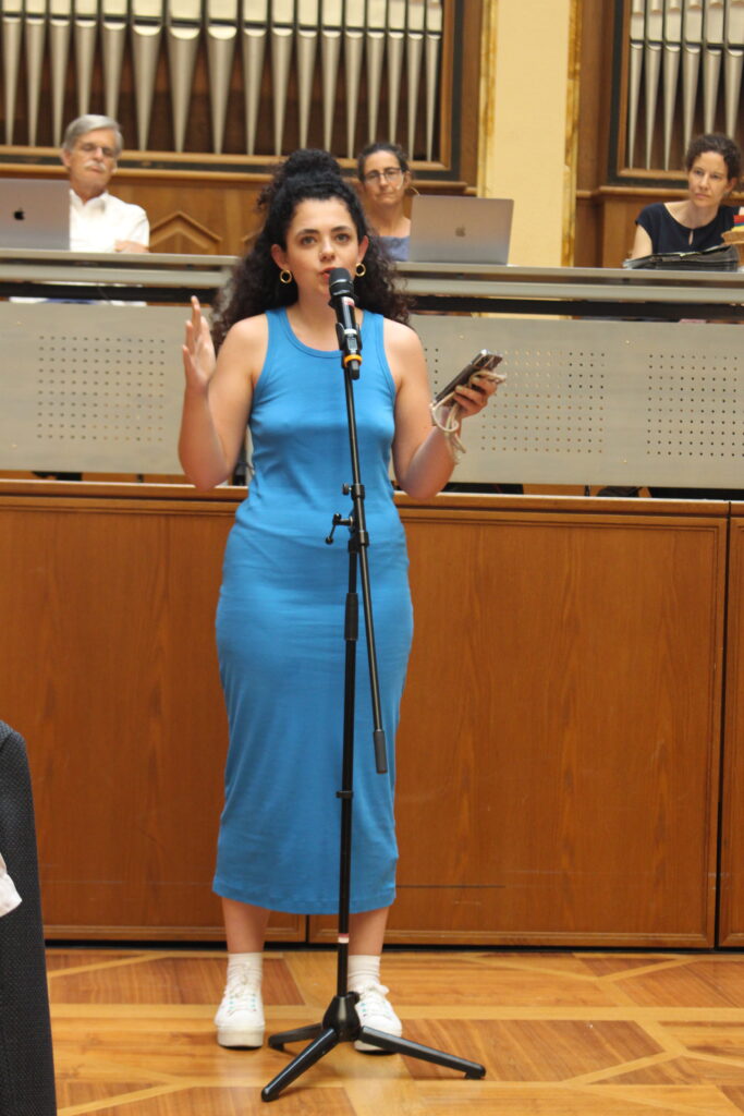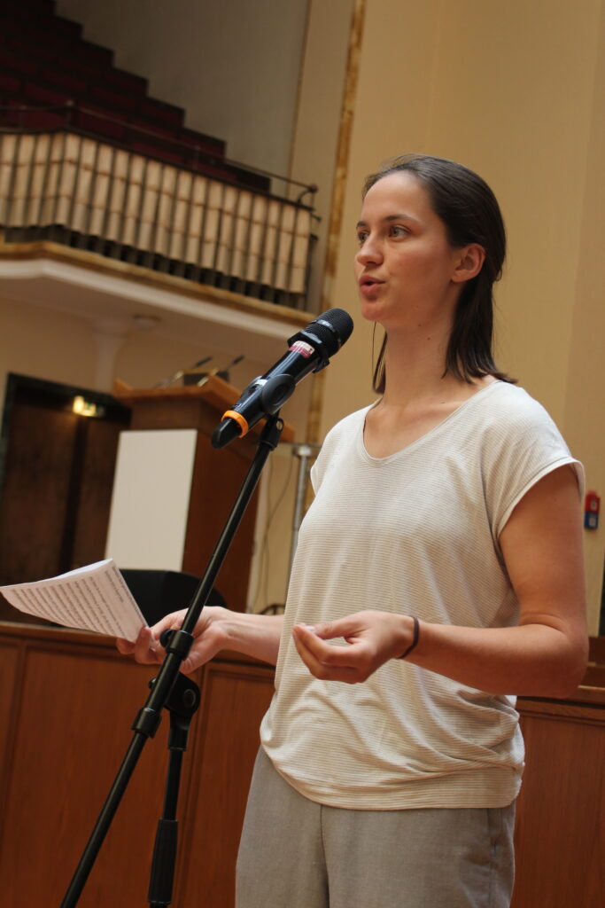Bis zu diesem Punkt war es nur den anwesenden Senator*innen gestattet sich zu äußern, doch da es einen hohen Gesprächsbedarf unter den Zuschauenden gab, ließ Bernd Engler über die Öffnung der Debatte abstimmen. Der Antrag wurde mit nur einer Enthaltung angenommen. Für die Jüdische Studierendenunion trat Hanna Veiler ans Mikrofon und wiederholte den Standpunkt der Union, den sie bereits bei der Podiumsdiskussion vorgetragen hatte: Die Namen Eberhards und Karls seien nicht mehr tragbar. Sie plädierte dafür, sich mit den Positionen der Juden und Jüdinnen, die hier und heute in Deutschland lebten, auseinanderzusetzen, anstatt mit den Positionen, die man selbst israelischen Juden und Jüdinnen zuschreibe.
