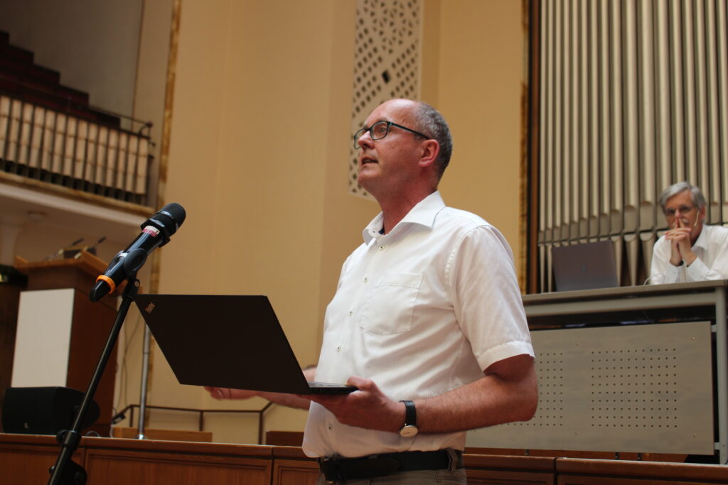 Anschließend durfte Sigrid Hirbodian, die Vorsitzende der Gutachter*innenkomission, wesentliche Punkte des Gutachtens vorstellen. Alle Gutachtenden betonten, dass sie nur Argumente sowohl für Gegner*innen, wie auch Befürworter*innen der Namensstreichung geliefert hätten, die Entscheidung jedoch ein politische sei. Die Verantwortung in dieser Frage liege letztendlich beim Senat. Das betonte auch der Rektor abermals. Man müsse sich die Frage stellen, ob man die Taten Eberhards und Karls im historischen Kontext oder ihre Verwerflichkeit aus einer Gegenwartsperspektive betrachten wolle. Erstmals verriet Engler an dieser Stelle zudem die Positionierung des Rektorats in dieser Debatte. Es spricht sich gegen eine Namensstreichung aus. Der Grund: Die Maßstäbe, die man anlegen müsse, wenn man die Uni umbenennen wolle, führten dazu, dass fast keine historische Persönlichkeit mehr geehrt werden könne. Vielmehr brauche es an der Uni Tübingen eine stärkere Aufarbeitung der eigenen Geschichte auch jenseits der NS-Zeit.