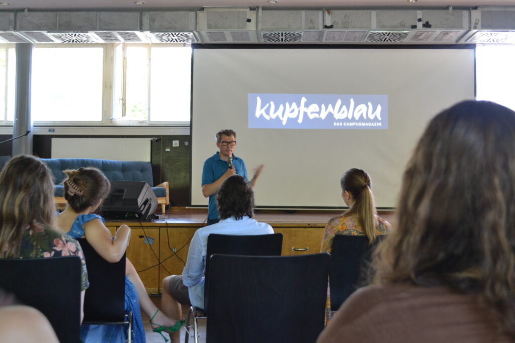 Die Kupferblau ist 25 Jahre alt geworden. Dies nahm sich die Redaktion zum Anlass, einen bunten Abend rund um das Thema Journalismus zu gestalten. Ehemalige Redakteur*innen der Kupferblau, aber auch Gäste von der Lokalpresse berichteten von ihren Erfahrungen in der vielfältigen Arbeitswelt des Journalismus.