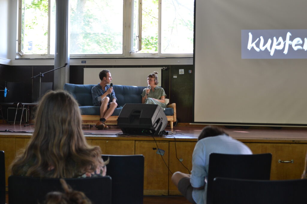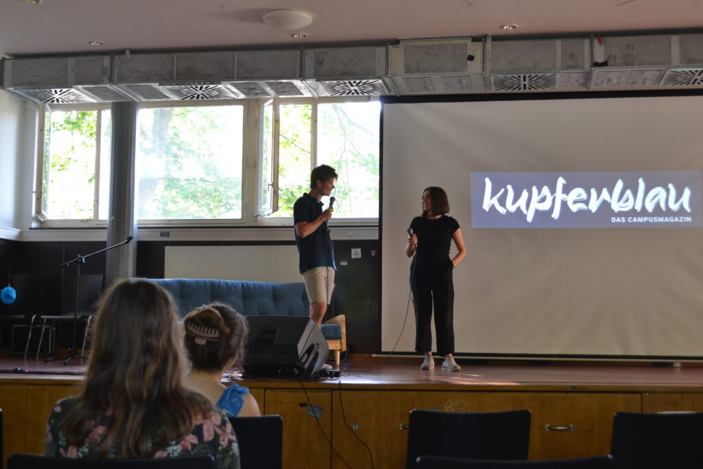 Der musikalischen Einlage folgte ein Interview mit Pia Rox, der ehemaligen Print-Chefredakteurin der Kupferblau, sowie der aktuellen Online-Chefredakteurin, Sinem Tuncer. Dabei ging es insbesondere um die Veränderungen, die das Campusmagazin in den letzten Jahren durchlebt hat: die Ausweitung in das Online-Format, welche Neuerungen es gegeben hat, was gleich geblieben ist, und wie die Social-Media Präsenz ausgebaut wurde und auch noch wird.