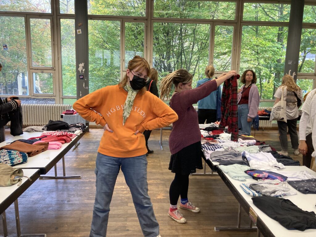 So muss es jedoch nicht sein! Der Kleidertausch beweist mit regen Kleiderspenden, Besuchern und guten Funden, das es auch anders geht. Bei einer spontanen Umfrage berichteten die Besucher*innen, dass sie sich über das Konzept des Tausches freuten und viele den ein oder anderen Schatz für sich entdecken konnten.