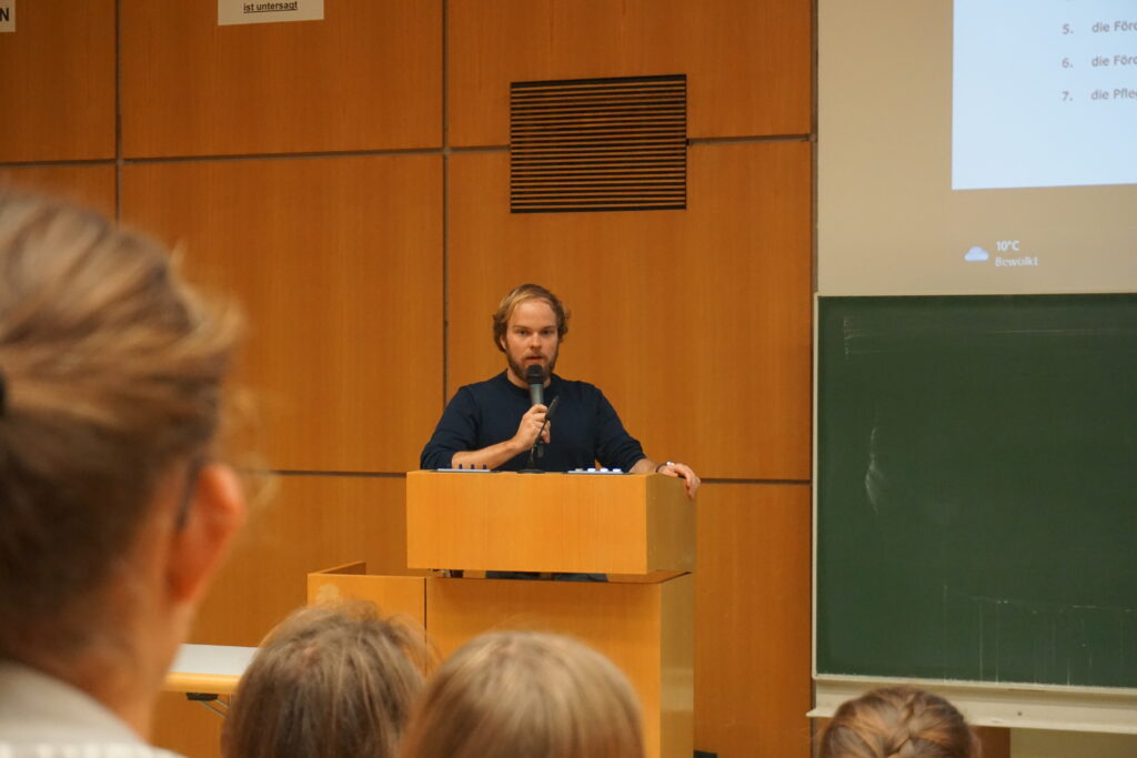 Anschließend stellte der Finanzreferent Moritz Rothaar die finanzielle Situation und die Aufgaben der Verfassten Studierendenschaft vor. Diese Aufgaben bestehen vor allem darin, studentische Projekte finanziell zu fördern, jedoch werden auch Gelder an die Fachschaften und die Arbeitskreise des StuRa vergeben, sowie mittels des Notlagenstipendium an Studierende verteilt. 3,50 Euro aus dem Semesterbeitrag eines*einer jeden Studierenden gehen an die Verfasste Studierendenschaft. Bisher vergibt der StuRa mehr Geld als er einnimmt, da er noch über hohe Rücklagen verfügt. Die Übernahme der Cafeterien wird jedoch kostenspieglig werden. Damit der Haushalt in Zukunft ausgeglichen ist, müssen entweder Ausgaben reduziert oder die Semesterbeiträge erhöht werden.