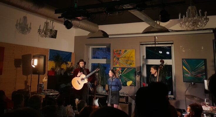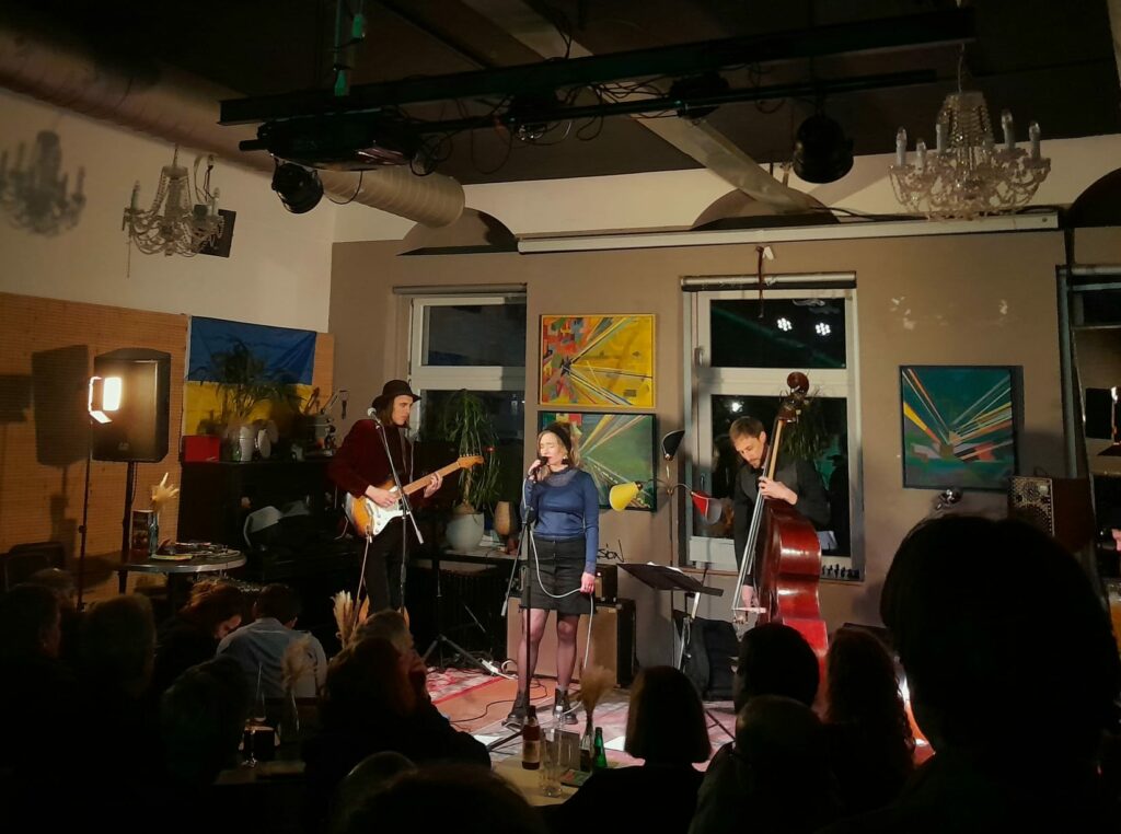 Am Mittwochabend, 26. April, war der kleine Raum von Café Haag so vollgepackt, dass fast gleich viele Leute stehen als sitzen mussten. Auf der wöchentlichen Mittwochsbühne trat das lokale deutsch-finnische Duo Pauline & Aleksi auf. Diese besteht aus Pauline Ruhe am Gesang und Aleksi Rajala an der Gitarre, zusammen mit Adrian Kunkel am Schlagzeug und Steffen Hollenberger am Kontrabass. An diesem gelungenen Abend stammten die meisten Lieder aus ihrem ersten Album „Prayer“. Die Kupferblau war dabei.