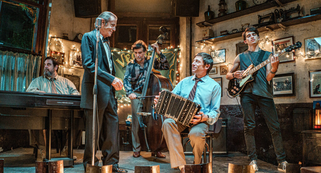 Viele Länder Lateinamerikas stecken seit Jahren in der Krise. Wie man damit umgeht, ist jedem selbst überlassen. Julio, der mittelmäßig erfolgreiche Bandoneon-Spieler in Adiós Buenos Aires beschließt jedenfalls, dass ihm die Krisen und die Korruption, die in Argentinien allgegenwärtig sind, zu viel geworden sind, und macht den Plan, nach Deutschland auszuwandern. Den vier Kumpanen in seiner Tango-Band sagt er davon vorerst nichts, denn diese haben es alle schwer, sie haben es satt, für ihre Auftritte in Empanadas bezahlt zu werden. Um ihre Erfolgschancen zu erhöhen, holen sie den alternden Tango-Sänger Ricardo an Bord, der froh ist, aus dem Seniorenheim zu entkommen.