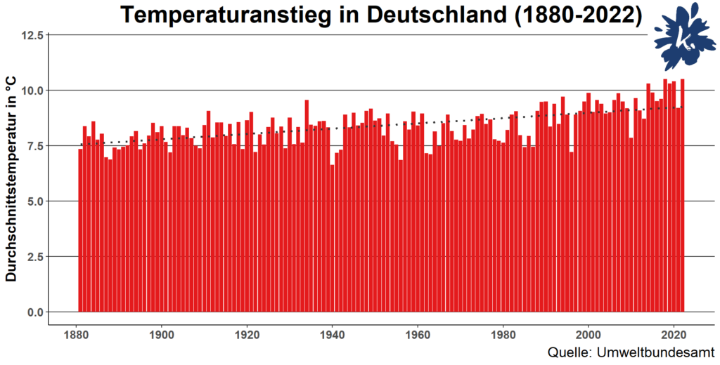 Der Klimawandel ist vermutlich die größte Herausforderung unserer Zeit. Laut jüngstem Bericht der Weltwetterorganisation (WMO), hat sich die globale Oberflächentemperatur für den Zeitraum 2011 bis 2022 gegenüber von 1850 bis 1900 bereits um durchschnittlich 1,1 Grad erhöht. In einer vor wenigen Tagen veröffentlichten Meldung geht die WMO sogar davon aus, dass in den nächsten Jahren die globale Durchschnittstemperatur 1,5 Grad über den Temperaturen vor der Industrialisierung und somit dem Beginn des menschengemachten Klimawandels liegen wird.