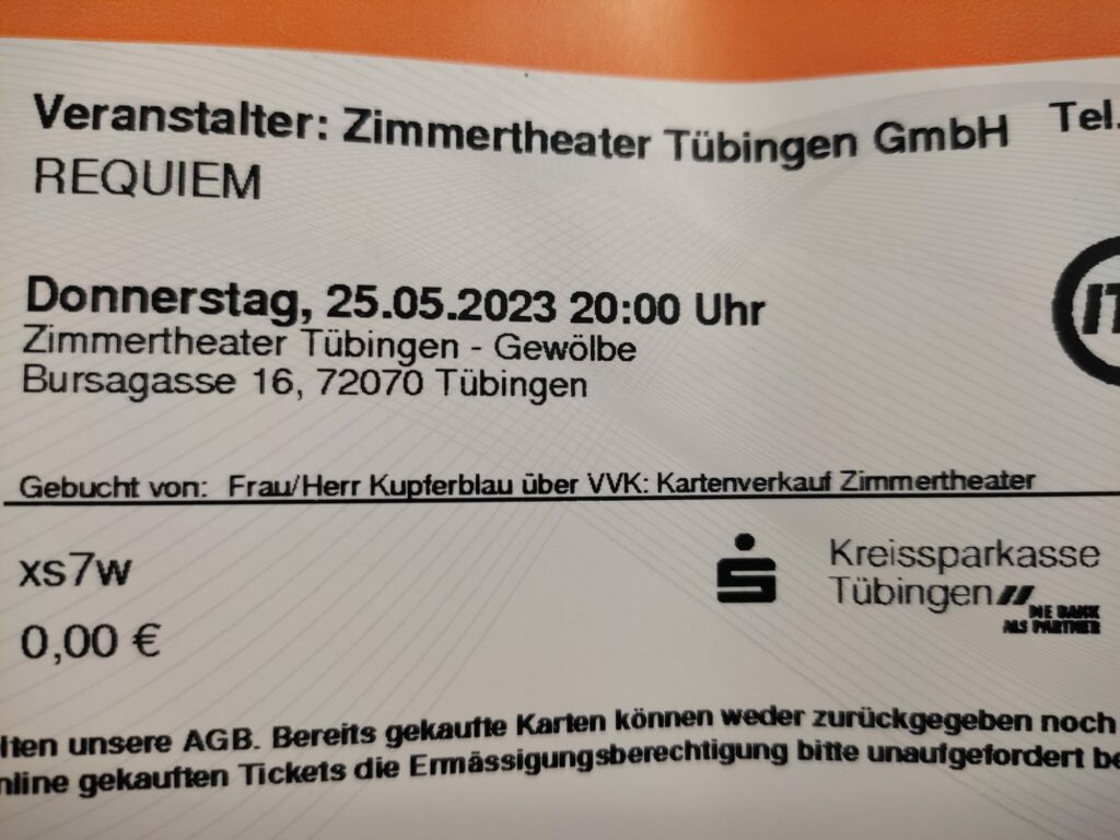 ‚REQUIEM‘ läuft noch bis einschließlich 22. Juni 2023 im Zimmertheater, den aktuellen Spielplan findet ihr hier.