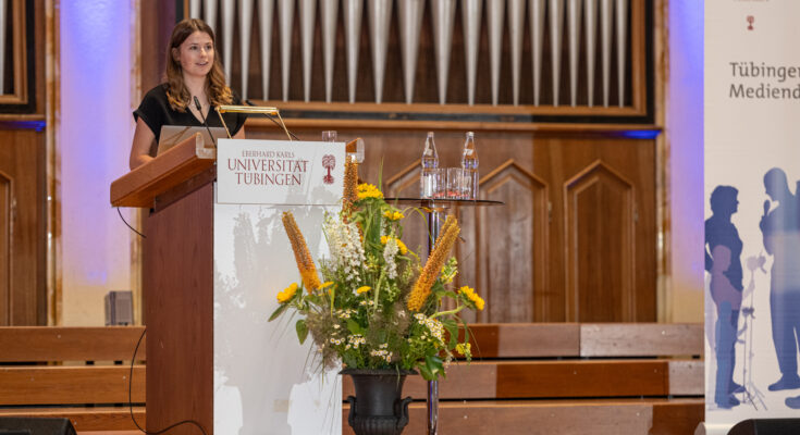 „Ich wollte hier in Tübingen nur nach dem Rechten sehen und gegen den Schindhaubasistunnel protestieren“. Mit diesen Worten beginnt die Umweltaktivisten Luisa Neubauer ihre Rede bei der 18. Mediendozentur. In einer knappen Stunde erzählte die Hamburgerin im vollbesetzten Festsaal der Neuen Aula von ihrer Sicht auf den Klimaaktivismus, die Verantwortung, und wie grundlegende Fragen aus dem Umweltschutz neu gedacht werden müssen: Über den Otto-Normalverbraucher hinaus, hin zu den CEOs und Politiker*innen in dieser Republik und der Welt. In ihrem Vortrag unter dem Titel „Sagen, was ist“, brachte die 27-Jährige vor allem ihre Machtlosigkeit gegenüber großen Teilen der Gesellschaft zum Ausdruck, da die Argumente für den Klimawandel bereits seit Jahrzehnten auf dem Tisch lägen, aber nicht ausreichend umgesetzt werden. Dazu gab Neubauer immer wieder spitze Bemerkungen in Richtung Friedrich Merz (CDU), Andreas Scheuer (CSU) und Christian Lindner (FDP) ab.
