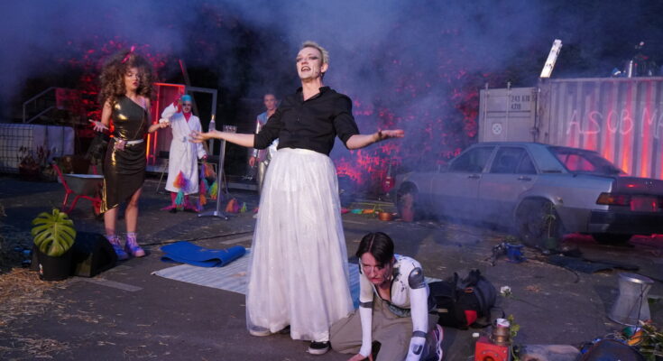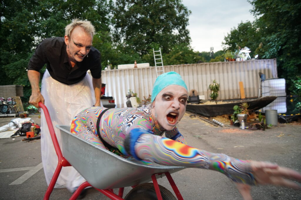 Chaos und Destruktion – das sind Leitmotive des im ITZ-Sommertheater aufgeführten Stücks Irrlichter. Ein Sommernachtstrauma. Die Elfen sind aus den Wäldern verschwunden – Oberon und Titania, König und Königin des Elfenvolkes aus Shakespeares Originalwerk, sind längst tot. Nur Puck, ehemals Diener und Hofnarr Oberons, ist zurückgeblieben und manipuliert noch immer die Schicksale der Menschen, die sich im Wald wiederfinden. Schrill und clever inszenieren die Schauspieler*innen des ITZ eine dystopische Version von A Midsummer Night’s Dream, in der die Figuren dem entsprechen, was sich unsere Gesellschaft groß gezogen hat: es finden sich ein desillusionierter Elf, ein ausrangierter Handwerker, ein oberflächliches Pärchen und sogar ein gefährliches Bakterium.