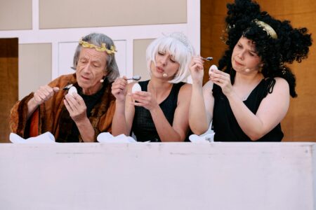 Wie reagiert ein kleiner Vorort, wenn sich allmählich alle Bewohner*innen in Nashörner verwandeln? Die Bruchbühne präsentierte das diese Woche im Brechbautheater. Es ist ein ganz normaler Tag in einem Städtchen. Die Figur Behringer trifft sich gerade mit seinem Hans, der ihm helfen will, sein Leben in den Griff zu bekommen. …